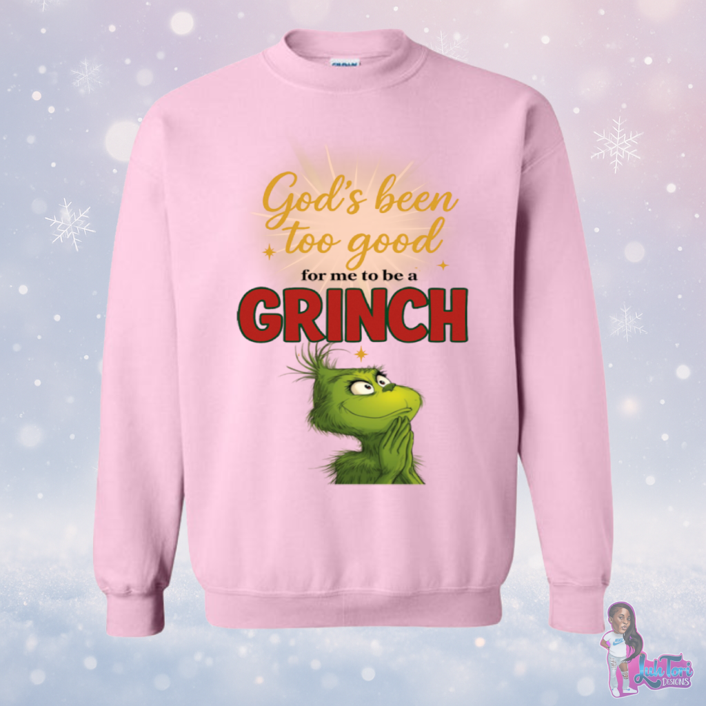 The God Been Too Good sweatshirt is a cozy reminder of favor, protection, and blessings that follow you everywhere you go. Soft enough for your chill days yet bold enough to make a statement — this piece lets your outfit testify for you.